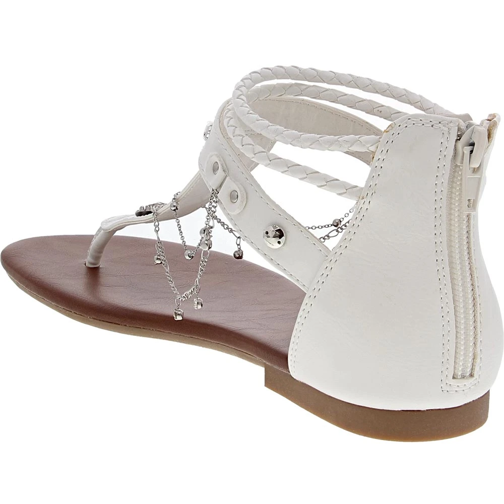 Jellypop Elvie Sandals – Womens. Take a walk on the wild side with Jellypop Elvie womens sandals. Flirty and fun, you can go places with Elvie. The strappy upper is absolutely festooned with charming details, such as chains and baubles, beads and medallions. The flat thong design lends an air of exoticism that will perfectly complement those long, flowing boho skirts in your closet. The cushioned insole keeps your feet comfy as you stroll through town.