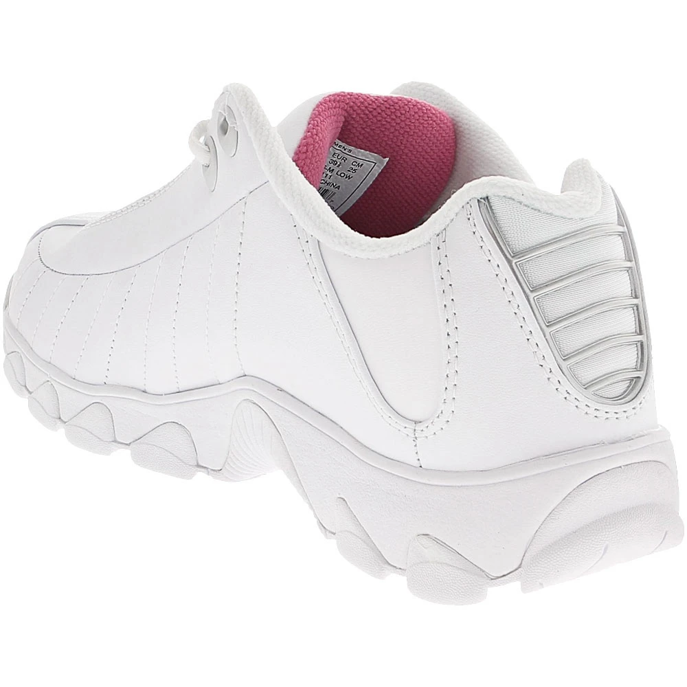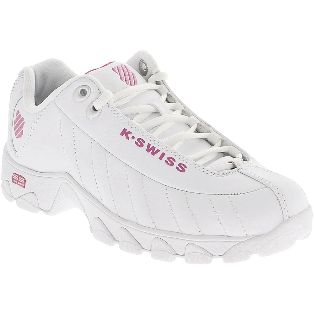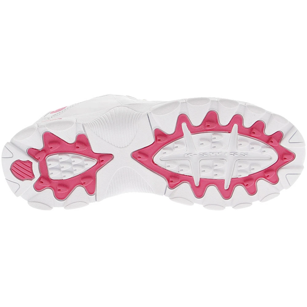 K-Swiss ST329 CMF Womens Training Shoes. Take the K-Swiss ST329 CMF training shoes to the gym for a great workout or around the block for a great walk. The synthetic leather upper provides sturdiness and durability to this shoe. A tread pattern on the rubber outsole gives you the traction that you need to go from one piece of equipment to the next to finish off a great workout. EVA makes up the midsole, providing you with cushioning. Flex grooves are positioned in an anatomically correct manner. Stay cushioned and comfortable with the memory footbed.