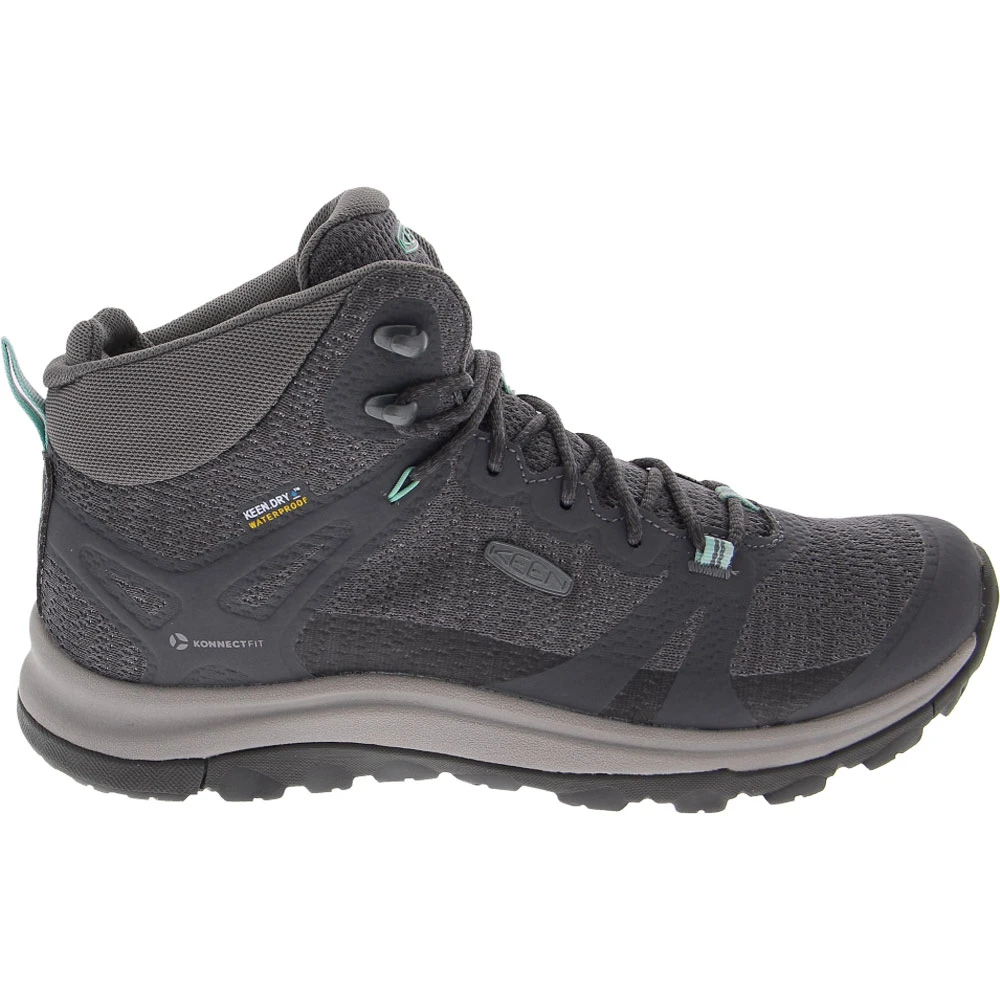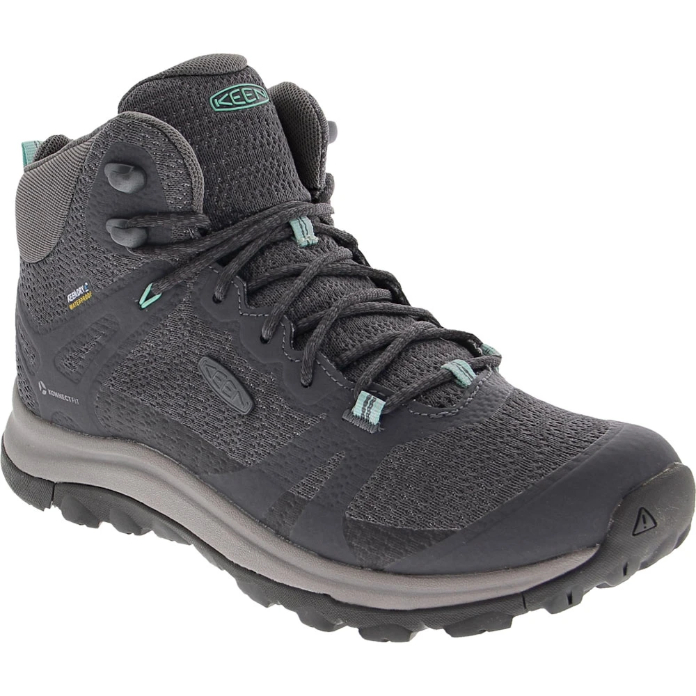 KEEN Terradora 2 Mid Wp Hiking Boots – Womens. High-tech waterproof features and superior comfort define KEEN’s Terradora II womens hiking boots. Performance mesh uppers and KEEN.DRY waterproof membranes block exterior moisture. Dual-density EVA footbeds with arch support and low-density EVA midsoles give you hours of dreamy comfort as you navigate your favorite trails. The KonnectFit heel capture system provides added stability and a locked-in feel. KEEN’s All-Terrain outsoles deliver a high-traction grip on multiple surfaces.