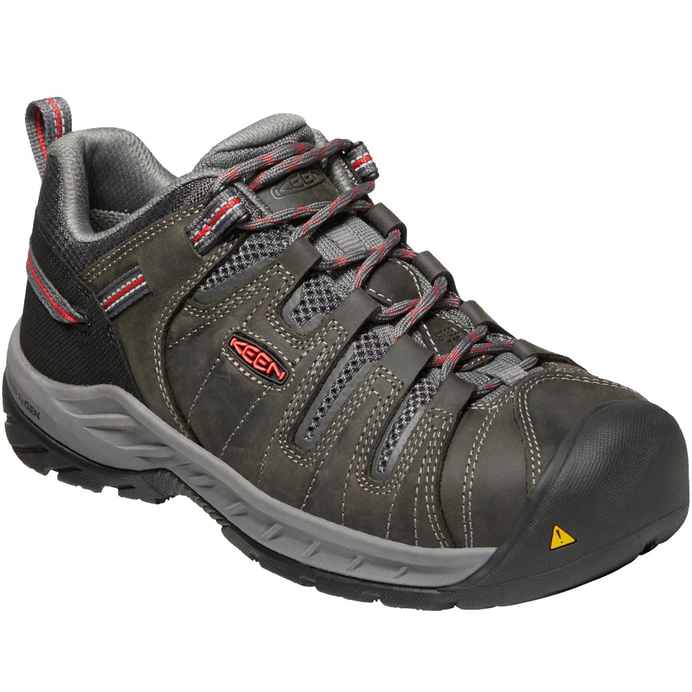 KEEN Utility Flint 2 Low Safety Toe Work Boots – Womens. KEEN Utility Flint II Low womens safety toe work shoes incorporate left and right asymmetrical toes, a super-energizing ReGEN midsole, a roomy toe box and a removable metatomical footbed with shellback heel support. An external stability shank provides solid midfoot support, while siped outsoles keep you surefooted on slick surfaces by quickly diffusing liquids under your feet.