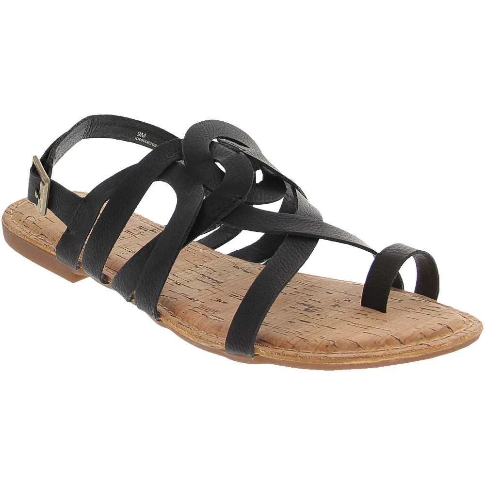 Korks Sangria Sandals – Womens. Add stylish flair to your favorite warm-weather ensembles by wearing a pair of these womens sandals. Strappy and fun, they let you show off some of your wild side while still being modern, classy and spirited. They have a gladiator-like upper with entwining straps, including a separate toe strap, and buckle closure. Designed to be lightweight and flexible, they have a cushioned cork footbed with a breathable liner and a durable rubber outsole with slip-resistant treads.