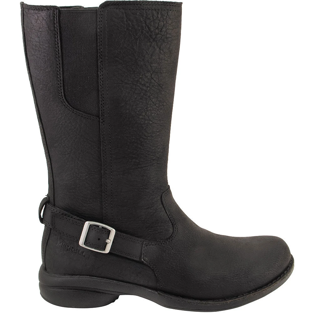 Merrell Andover Peak Tall Dress Boots – Womens. A serious boot for serious weather, Merrell Andover Peak womens tall dress boots can take on the worst winter offers. The full grain waterproof leather upper keeps the rain and snow out while low bulk insulation keeps the warmth in. A removable contoured insole lets you take every step in comfort and an air cushion in the heel is the best shock absorber around. Be the Snow Queen with Merrell.