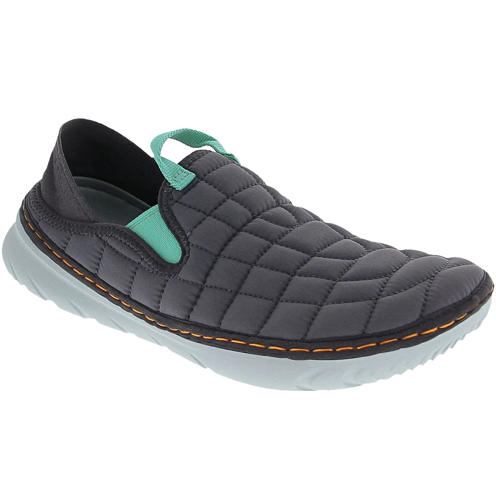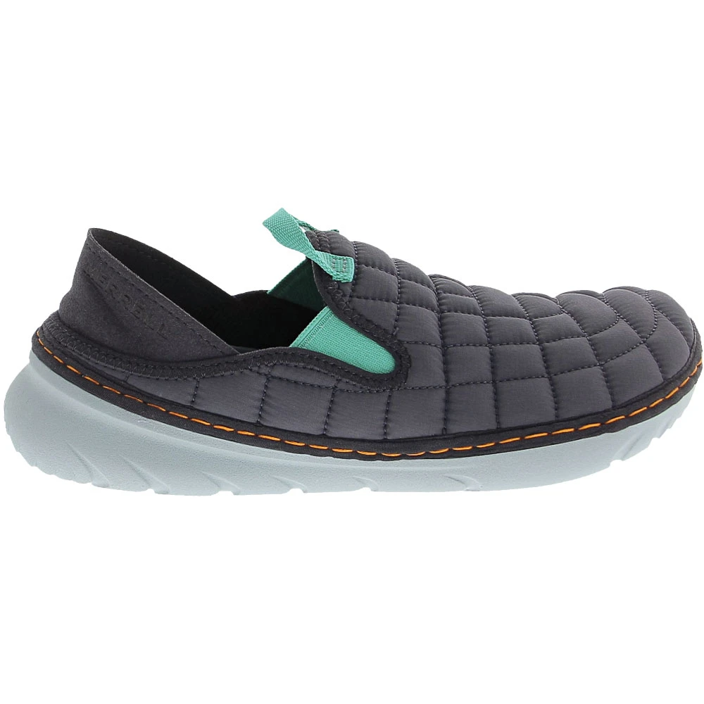 Merrell Hut Moc Slip on Casual Shoes – Womens. Great for camping outdoors or lounging indoors. These slip on casual shoes can handle light adventures, no matter where you are. Quilted nylon uppers and front pull loops to make entry and removal easy. They’re ultralight, cushioned, roomy and comfortable and made to handle walks on road and park terrains. The EVA outsoles provide support and traction.