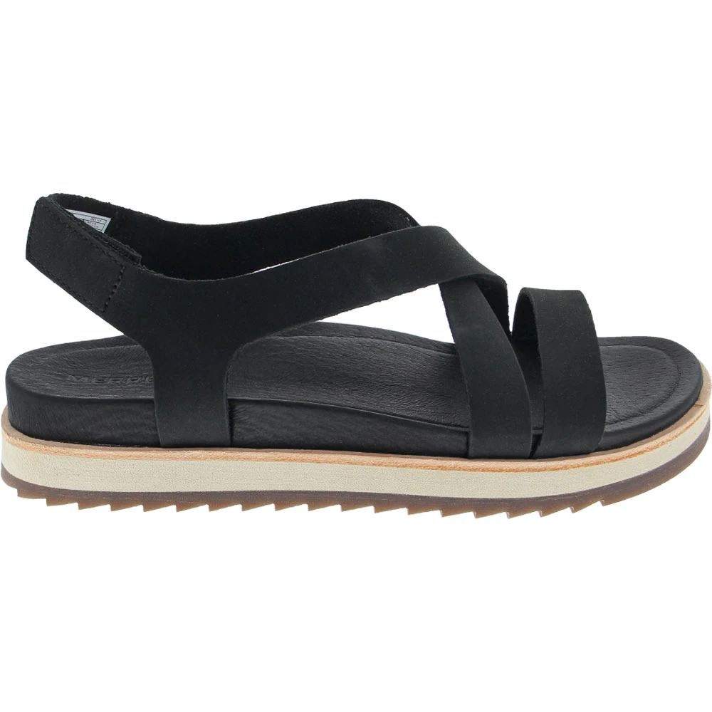 Merrell Juno Backstrap Sandals – Womens. Get the stylish appeal of a sophisticated strappy sandal with the durability and comfort of active footwear in these womens sandals. Perfect for warm days exploring the world, they feature a leather upper with decorative stitching that add a little sass to every step. A cushioned midsole and footbed designed to keep active feet supported and comfortable all day. They have an adjustable strap for easy wear and a durable, high-traction outsole.