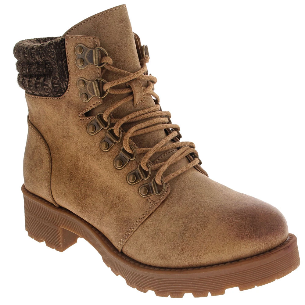 Mia Marlon Casual Boots – Womens. Women with a fun, rugged side will appreciate these womens casual boots. Infused with elements of combat boots and work boots, they bring a spirited accent to casual ensembles. Featuring a durable upper with a sweater accent that adds a feminine flair. Metal loop enclosures give a touch of style to traditional lace-ups. Whether going on an outdoor adventure or enjoying city sights, their durable outsoles will keep you going.