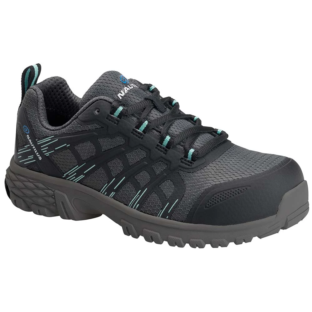 Nautilus Stratus Composite Toe Work Shoes – Womens. Get the athletic capability you crave alongside the protective strength you need in the Nautilus Stratus Womens Safety Toe Shoe. It is made to meet ASTM workplace safety standards, including F2413 requirements for electrical hazard and safety toe compliance. The textile upper pairs with a high-grip rubber outsole for outstanding durability, as the EVA midsole lends added support you will appreciate during long shifts on your feet.