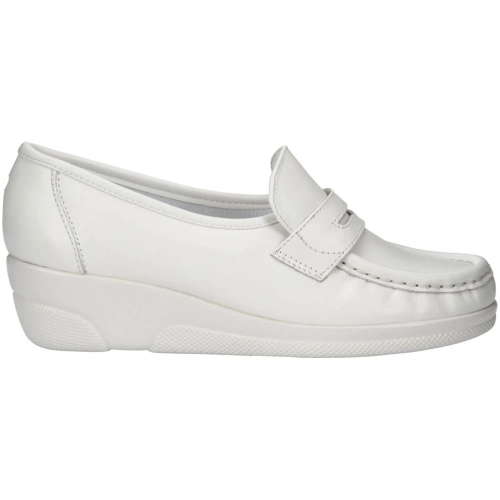 Nurse Mates Pennie Womens Slip On Nursing Shoes. Increase your efficiency in the Nurse Mates Pennie slip on. Genuine leather uppers with stain resistant finish. Soft, padded lining inside provides a little bit of cushioning. The polyurethane sole is shock-absorbing for all-day comfort.