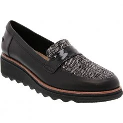 Clarks Sharon Gracie Slip On Casual Shoes – Womens Black White