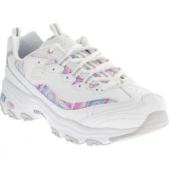 Skechers D’Lux Walker Rainbow Sky Walking Shoes – Womens White Multi