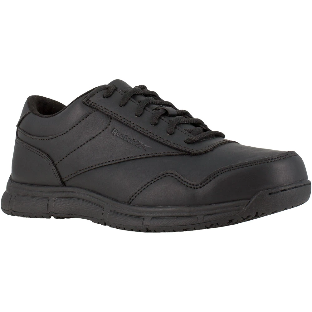 Reebok Work Rb113 Women’s Non-Safety Toe Work Shoes. For superior slip resistance, all-day comfort and protection, this women’s non-safety toe shoe from Reebok delivers unparalleled performance. Ideal for work environments with wet or oily conditions, the Jorie LT features a metal-free construction with a soft toe and electrical hazard protection. Its durable rubber outsole offers a high friction coefficient while a cushioned footbed, a beveled heel and flex grooves provide comfort and support natural movement.