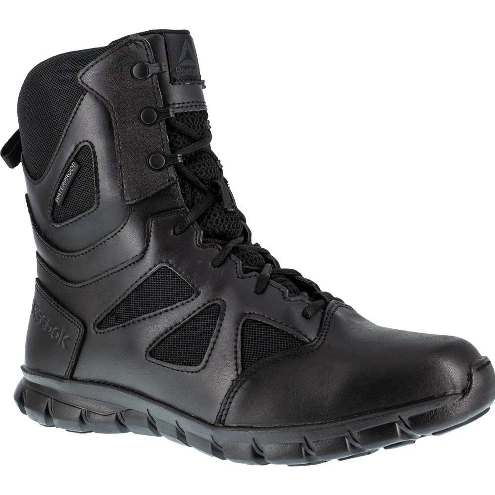 Reebok Work Rb806 Women’s Non-Safety Toe Work Boots. Tall footwear doesn’t need to restrict mobility. This waterproof tactical boot fits that mold. It fits snugly to your foot and ankle, but it’s mindful lace-up design and accommodating nylon mesh (which is also moisture wicking) make sure that your feet won’t slow you down.