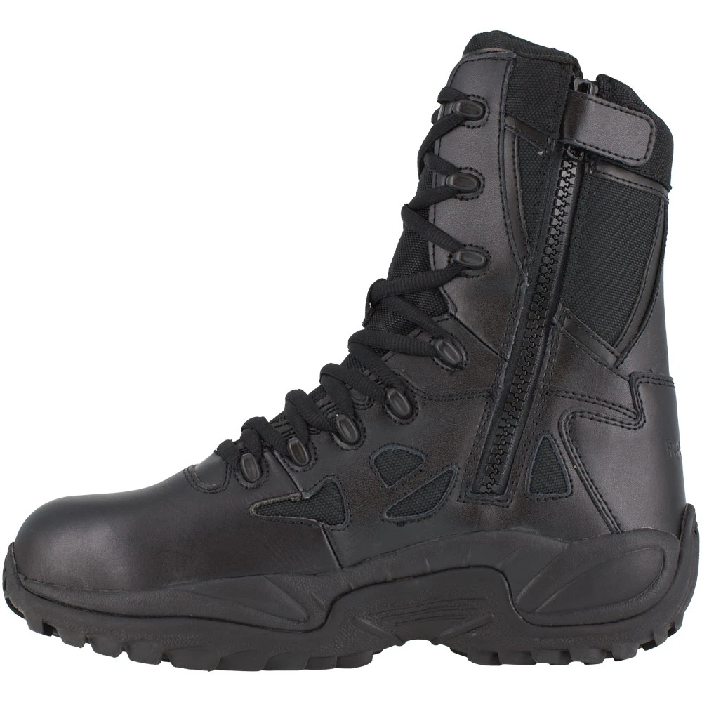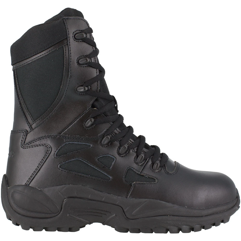 Reebok Work Rb874 Women’s Composite Toe Work Boots. Get a boost of confidence with the help of Reebok Work Rb874 Composite Toe Work Boots. These sleek black boots are made with your safety and comfort in mind. The extra wide composite safety toe cap adds extra protection and room for the toes while the specialized shock heel cushion protects the heel. Get coverage from the toe and heel to the ankle as well, thanks to the leather and nylon upper.
