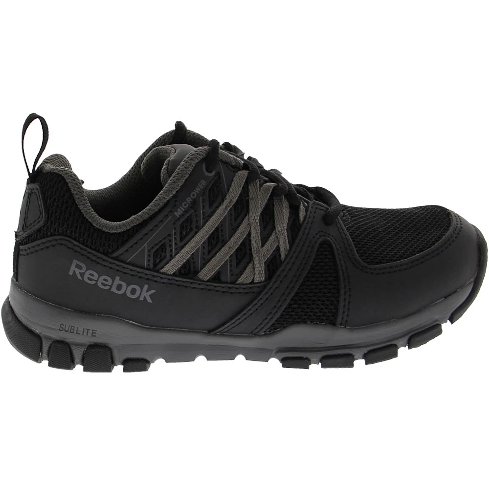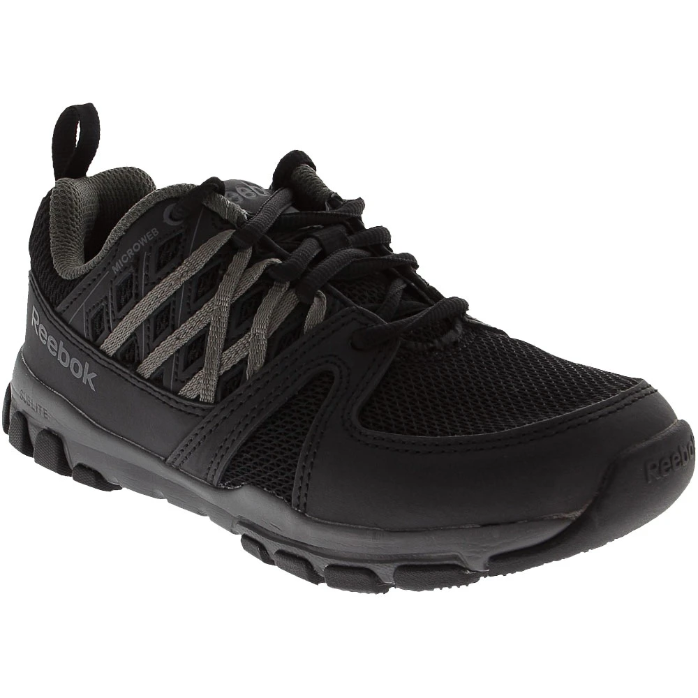 Reebok Work Sublite Esd Wos Non-Safety Toe Work Shoes – Womens. With Reebok’s Sublite Work womens soft toe work shoes, you’re ready for a full day of hard work. The Sublite features abrasion-resistant leather, mesh and MicroWeb uppers with a 100% non-metallic construction and astatic dissipating dual resistor. Moisture-wicking linings, MemoryTech memory foam inserts and Sublite EVA midsoles keep your feet cool, dry and cushioned step by step. Rubber slip-resistant outsoles deliver consistent traction on multiple surfaces.