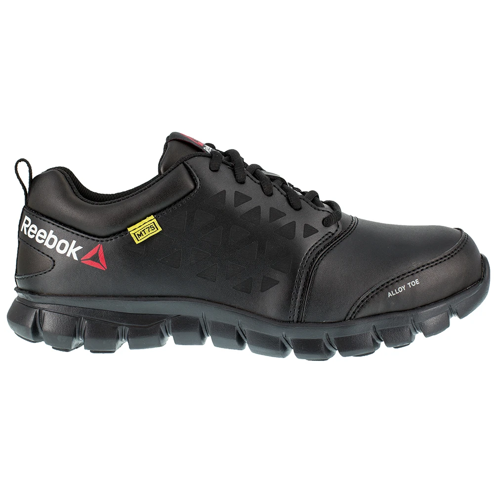 Reebok Work Sublite Metguard Low Women’s Safety Toe Work Shoes. You are well protected, comfortable and focused on the job when you lace up the Sublite Cushion Alloy Toe Work Shoe by Reebok. It keeps you safe, with rated defenses against electrical hazards, slips, chemicals, oils and abrasions. Nylon mesh lining wicks foot moisture away to keep you fresh, and a MemoryTech footbed offers generous cushioning for reliable resilience.