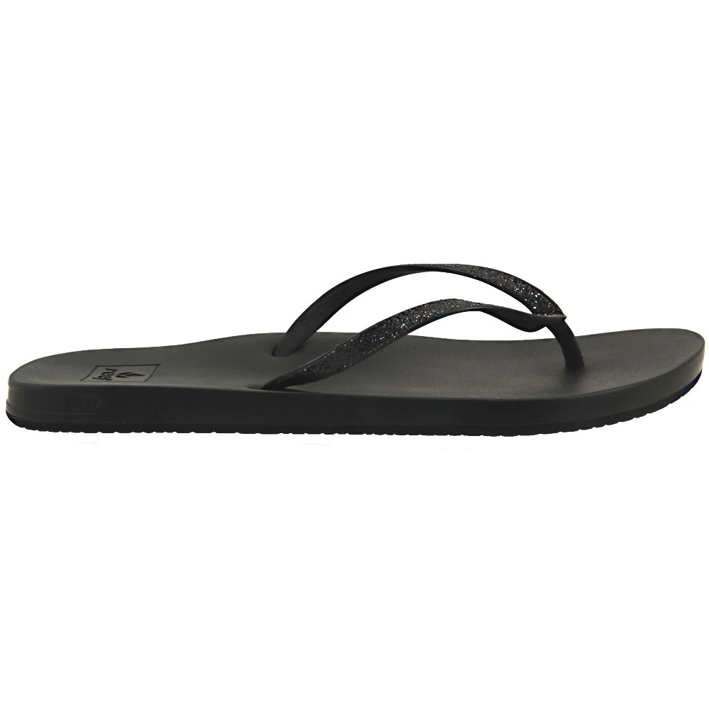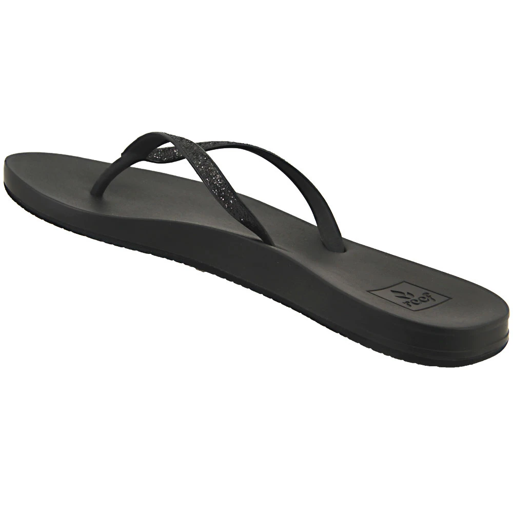 Reef Cushion Bounce Stargaz Women’s Flip Flops. The Cushion Bounce Stargazer Women’s Flip Flop Sandals introduce style and comfort together to give you the best of both worlds. The slim faux leather upper is contoured with a soft EVA footbed for arch support and Reef’s signature bounce foam catches and cushions every step. The rubber sponge outsole is molded with a swell design to maximize traction. Straps come with finished edges and a chic glitter overlay.