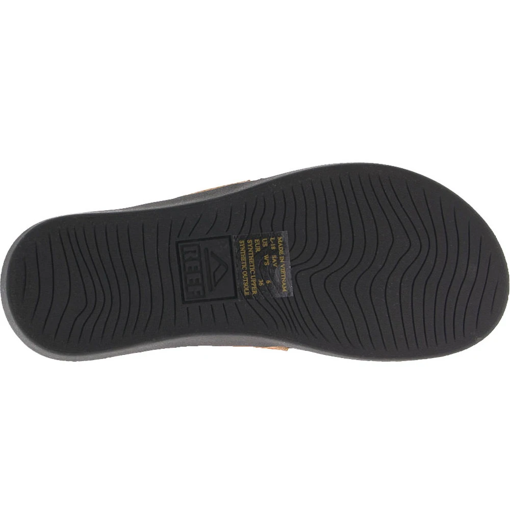 Reef Ortho Bounce Woven Women’s Sandals. Summer officially begins when you slip on these ultra-fashionable women’s sandals. Flip-flops are a dime a dozen, but these stand out from the herd because of their eye-catching design. Enjoy the upper foot strap made from recycled PET webbing with vegan leather detailing so you can look great without compromising your standards. Your feet rest in a cushioned rubber footbed that provides supreme arch support and heel cupping.