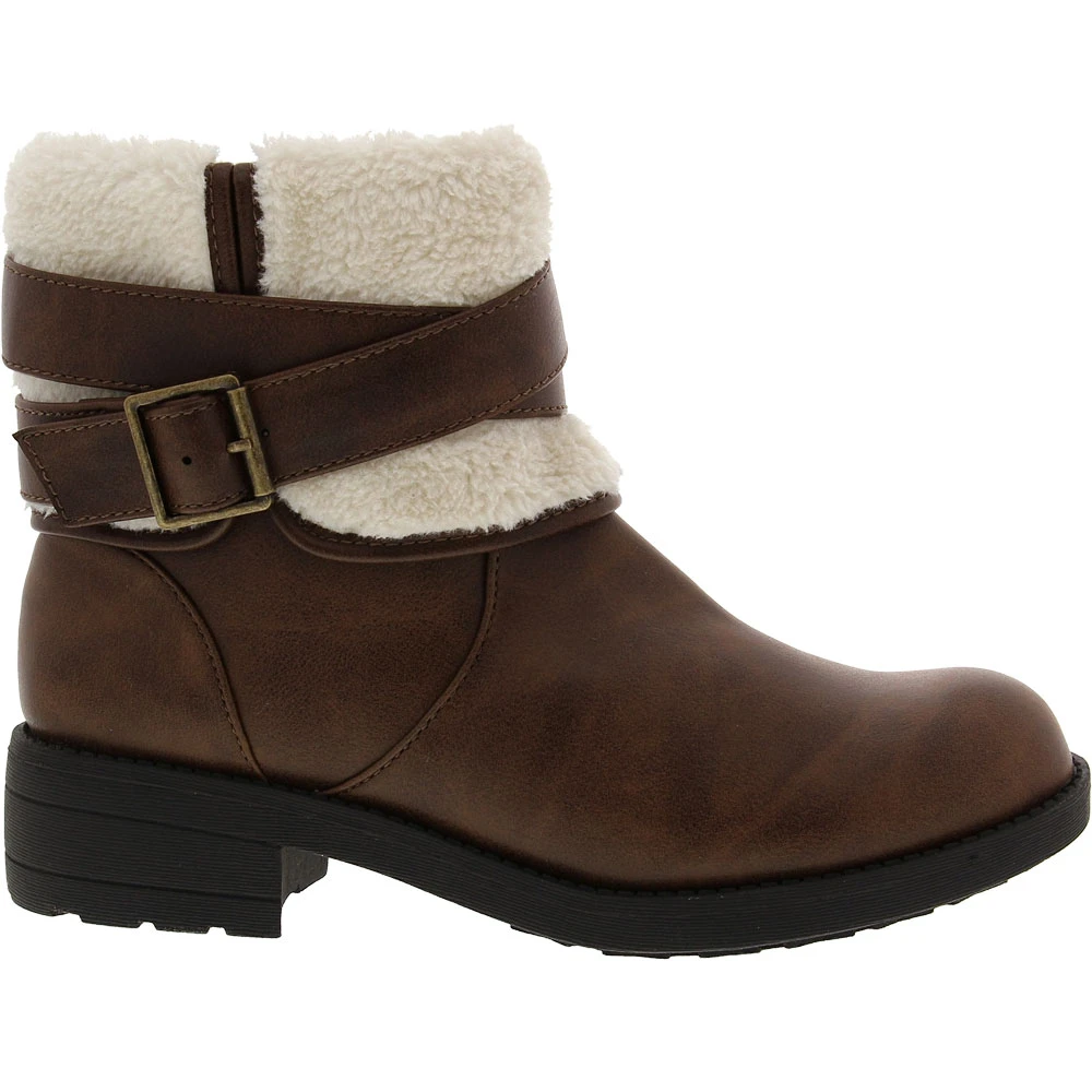 Stay cute and cozy no matter the weather with these stylish womens ankle dress boots. Perfect for chilly days and frosty nights, the Rocket Dog Trepp Ankle Boots come with a folded faux shearling cuff. Add some edginess to your look with the wrap-around ankle strap and buckle. The inside zipper closure makes it easy to pop these shoes on, and the foam footbed provides comfort in every step.