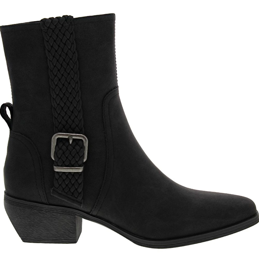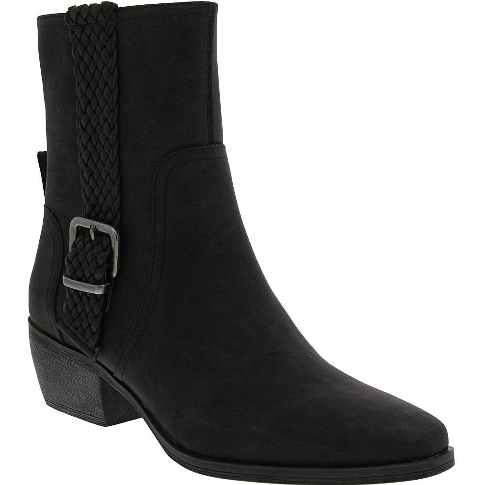 Add western flair to your look while exuding classy sophistication by wearing these womens casual boots. Trendy ankle boots with a classic silhouette that has a modern vibe thanks to a braided strap and metallic buckle on the side. Featuring a hidden side zipper and a memory foam insole that keeps feet cushioned and comfortable all day. The block heel gives you a touch of height while the rubber outsole offers optimal traction.
