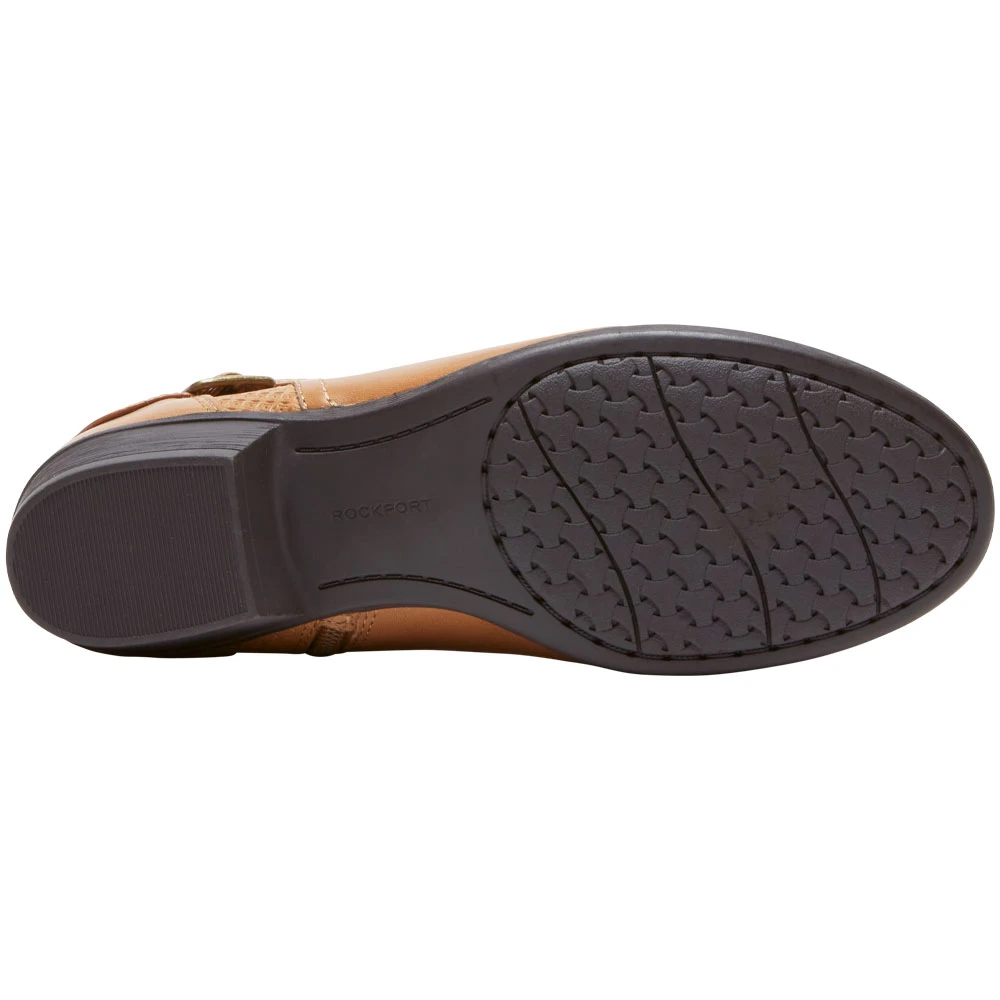 Rockport Carly Strap Boot Womens Casual Boots. Take your cooler-weather look up a notch with these womens casual boots. Stylish and modern, they have a soft leather upper with a wraparound buckle strap and accents that make them sophisticated yet casual enough for everyday wear. Their sleek silhouette is complemented with innovative cushioning. Lightweight and flexible, they have an EVA footbed and microfiber lining that cushions feet and keeps feet cool. The rubber outsole offers optimal traction no matter the weather.