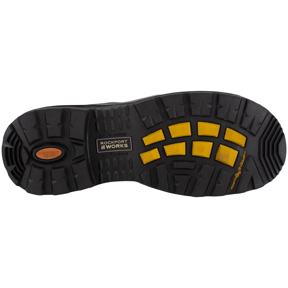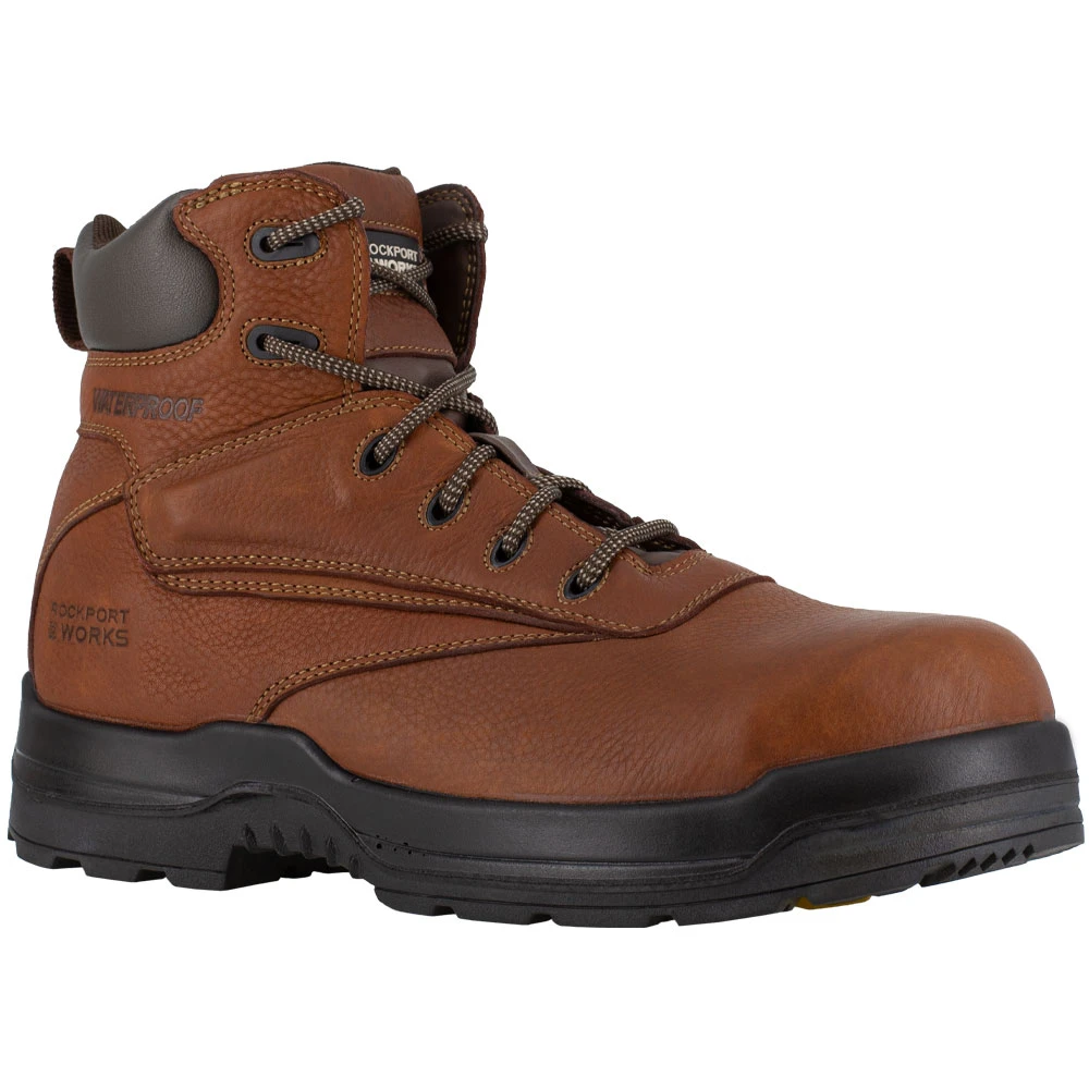 Rockport Works More Energy 6in Women’s Composite Toe Work Boots. The Rockport Works More Energy women’s composite toe work boots are up to the challenge of working just as hard as you do. These boots feature a safety toe constructed of a material that is non-ferrous elastomeric, providing it with durability and the ability to withstand hazards that could otherwise cause injury. Manufactured to protect, these Rockport work boots can withstand impacts, electrical circuits and up to 75 pounds of compression.