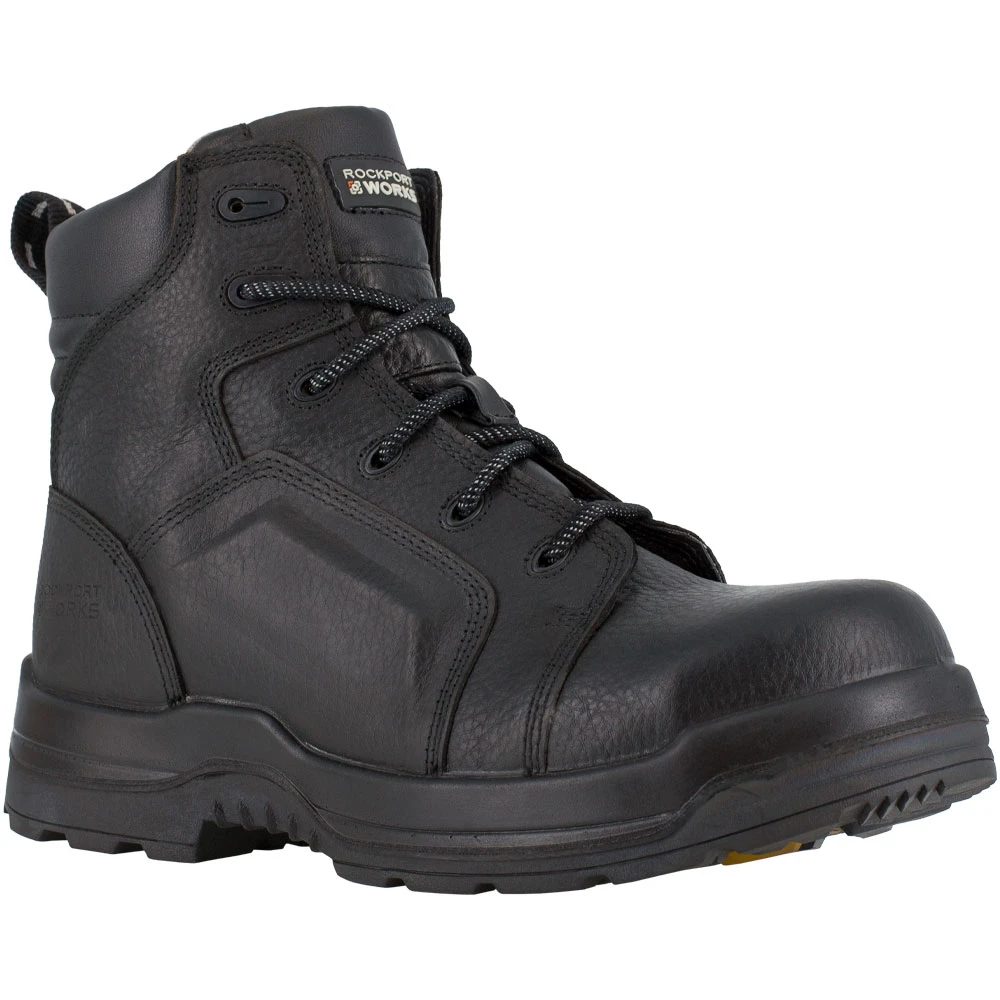 Rockport Works More Energy Women’s Composite Toe Work Boots. These boots will keep your feet safe from harm and comfortable. You can’t ask much more of your shoe that that! The smooth leather upper covers a protective toe that meets compression safety standards as well as electrical hazard standards. The interior of the boot is covered with mesh while the exterior boasts a waterproof layer. This shoe has a generous 6-inch shaft that keeps your feet dry, and the outsole is slip-resistant and oil-resistant.