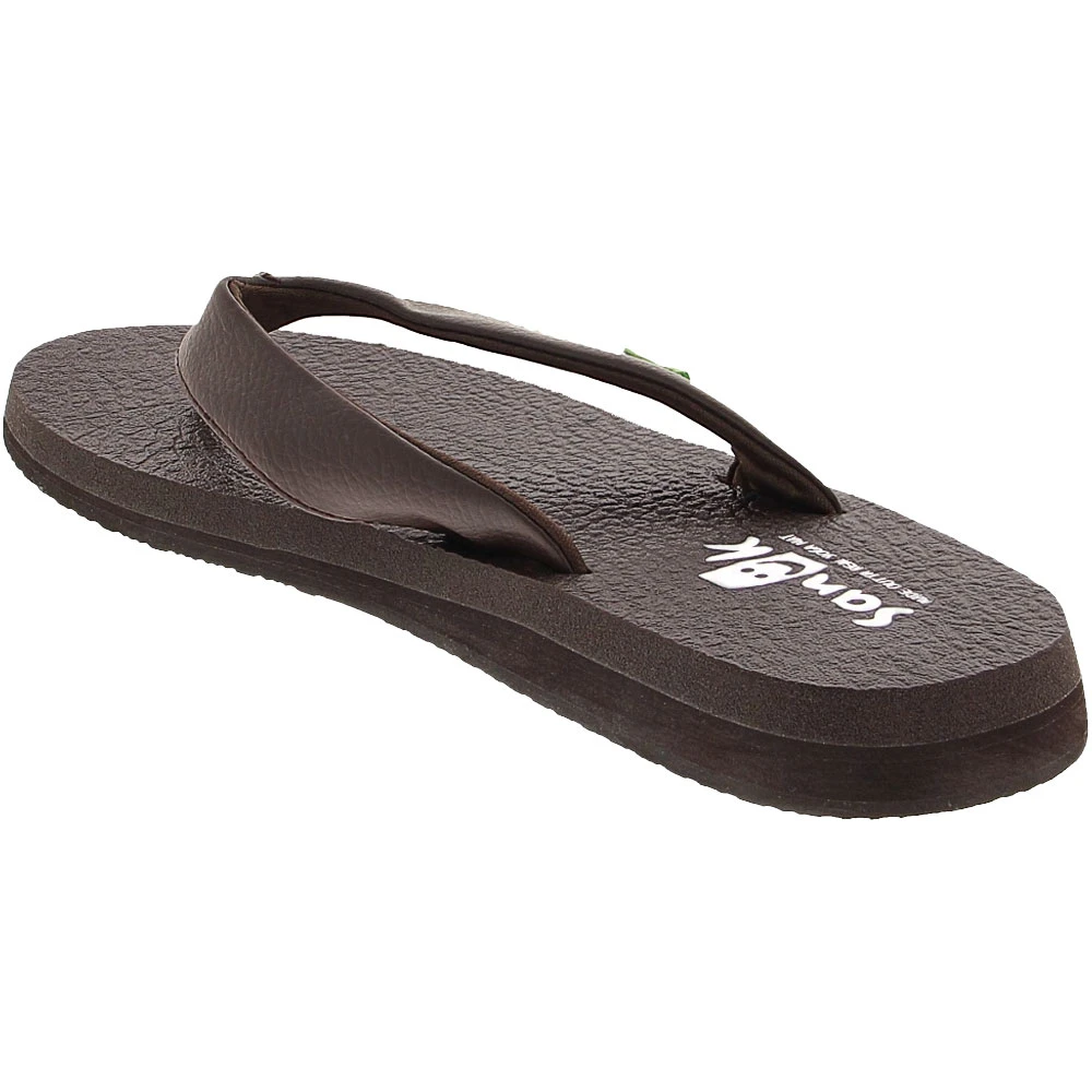 Sanuk Yoga Mat Daily Women’s Flip Flops. Are you looking for a pair of comfy, cushy flip flops for the warm-weather season? These sandals from Sanuk might be just what you need. The straps are made of synthetic leather and are a medium width for a shoe that is neither too dainty nor too sturdy. They are lined in a soft jersey fabric. Recycled yoga mats form the plush footbed, which is thick, cushioned, and feels great under your feet.