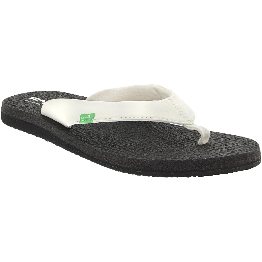 Sanuk Yoga Mat Daily Women’s Flip Flops. Are you looking for a pair of comfy, cushy flip flops for the warm-weather season? These sandals from Sanuk might be just what you need. The straps are made of synthetic leather and are a medium width for a shoe that is neither too dainty nor too sturdy. They are lined in a soft jersey fabric. Recycled yoga mats form the plush footbed, which is thick, cushioned, and feels great under your feet.