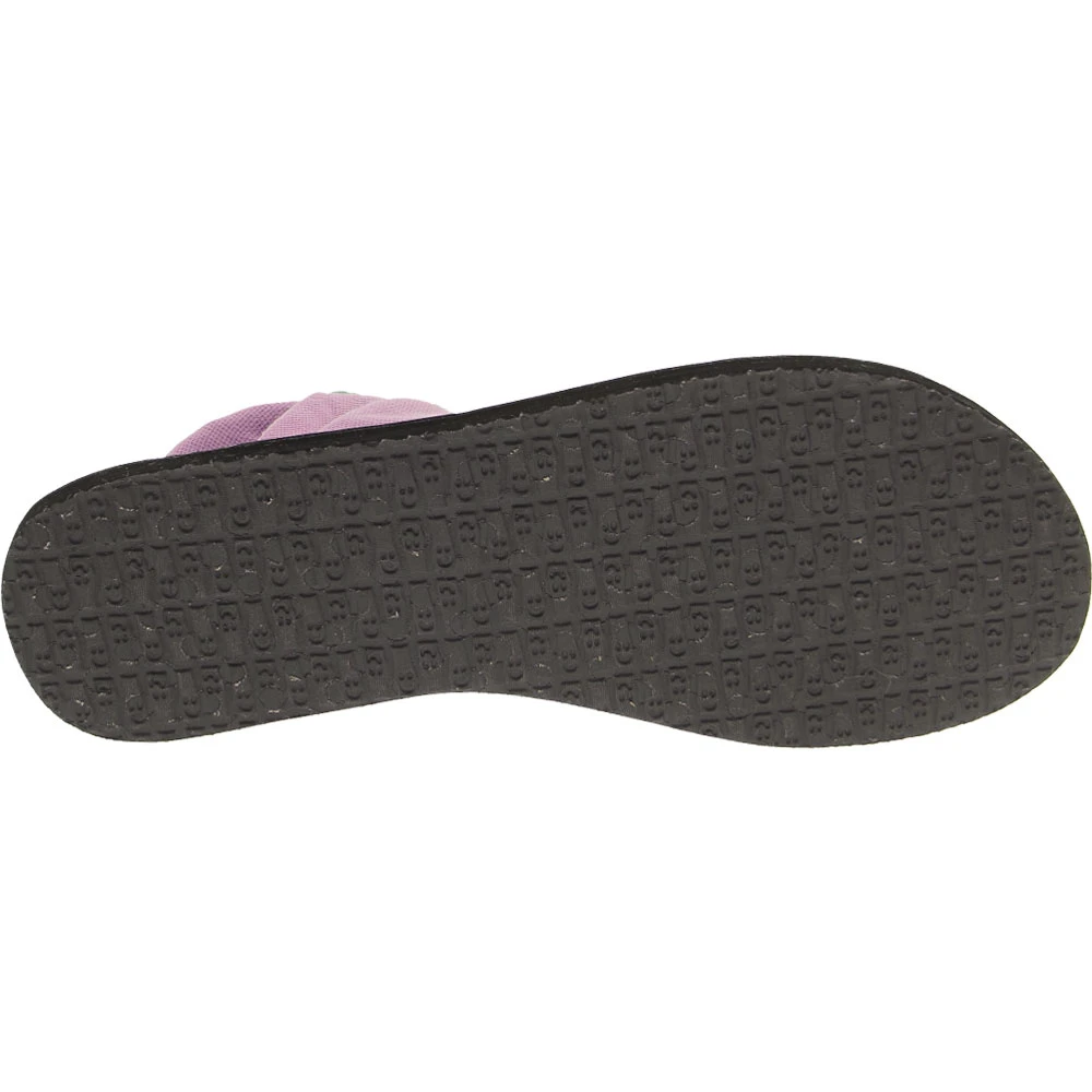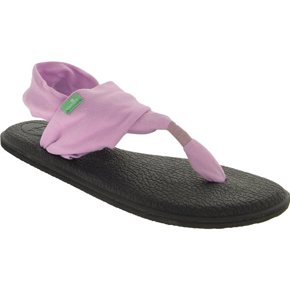 Sanuk Yoga Sling 2 Women’s Thong Sandals. Head outside with the Sanuk Yoga Sling 2 sandal. For comfort, this sandal provides you with a lightweight, two way stretch knit fabric upper. The footbed is made from real yoga mat with a sealed edge and stitch detail. Get traction and durability with the Happy U sponge rubber outsole.