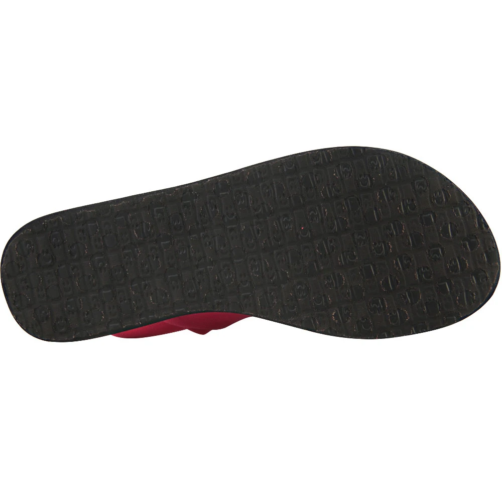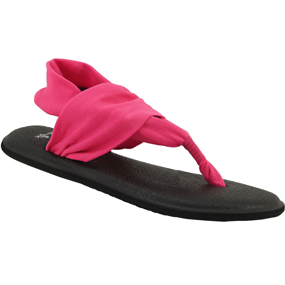 Sanuk Yoga Sling 2 Women’s Thong Sandals. Head outside with the Sanuk Yoga Sling 2 sandal. For comfort, this sandal provides you with a lightweight, two way stretch knit fabric upper. The footbed is made from real yoga mat with a sealed edge and stitch detail. Get traction and durability with the Happy U sponge rubber outsole.