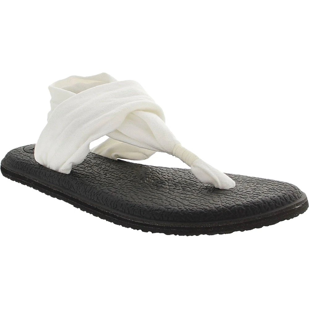Sanuk Yoga Sling 2 Women’s Thong Sandals. Head outside with the Sanuk Yoga Sling 2 sandal. For comfort, this sandal provides you with a lightweight, two way stretch knit fabric upper. The footbed is made from real yoga mat with a sealed edge and stitch detail. Get traction and durability with the Happy U sponge rubber outsole.