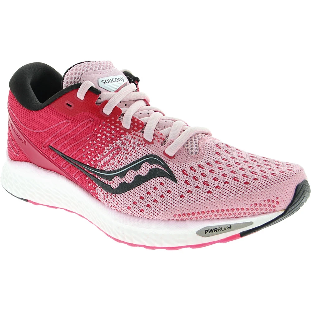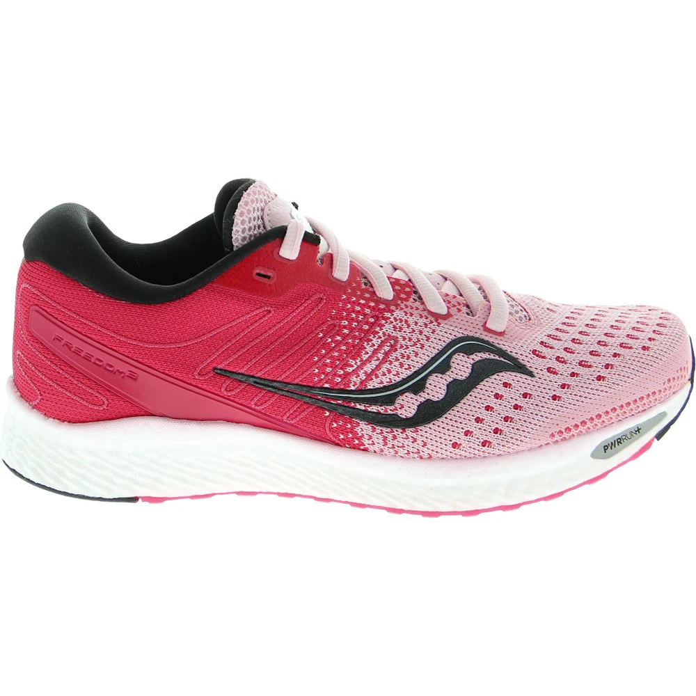 Saucony Freedom 3 Womens Running Shoes. Enjoy the lightweight responsiveness of these low-profile womens running shoes. The FORMFIT mesh upper stretches for an adaptable and customized fit that moves with you as you run. The rubber outsole gives you excellent traction while maintaining flexibility. A padded collar gives extra cushioning and support to the heel, enhancing your comfort. These shoes feature lightweight PWRRUN+ cushioning to keep you comfortable and agile, letting you experience that lighter-than-air feeling for your entire run.