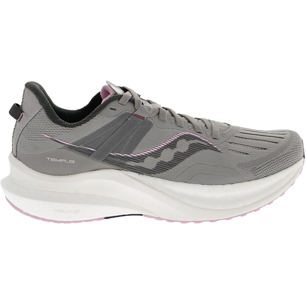 Amp up your daily run and speed training sessions with Saucony Tempus womens running shoes. The Tempus features a full-length PWRRUN PB core in each midsole, delivering excellent cushioning with responsiveness and energy return. The Tempus also integrates a contoured PWRRUN frame with a curved shape, improving ground contact and quick transitions. Sturdy XT-9000 outsoles provide traction and long-lasting wear. Breathable lightweight mesh uppers keep your feet cooler and drier.