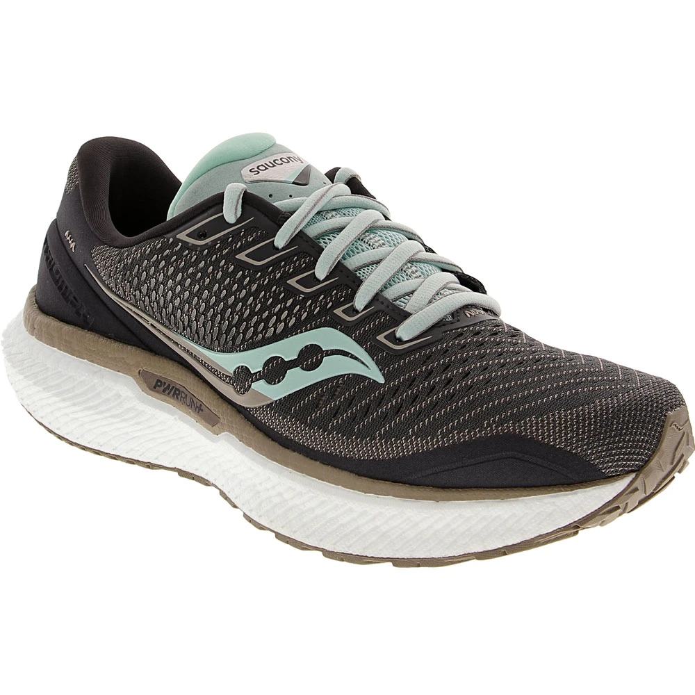 Saucony Triumph 18 Running Shoes – Womens. Go ahead and put that marathon on your calendar for next spring. With Triumph 18 shoes from Saucony on your feet, you’ll be more than ready. Impressively comfortable womens running shoes, Triumph 18 have PWRRUN+ midsole cushioning that simply babies your feet. The engineered mesh upper is breathable and supportive, providing you with a custom-like fit. The midsole has been retooled to be more flexible and responsive. The miles fly by with Triumph.