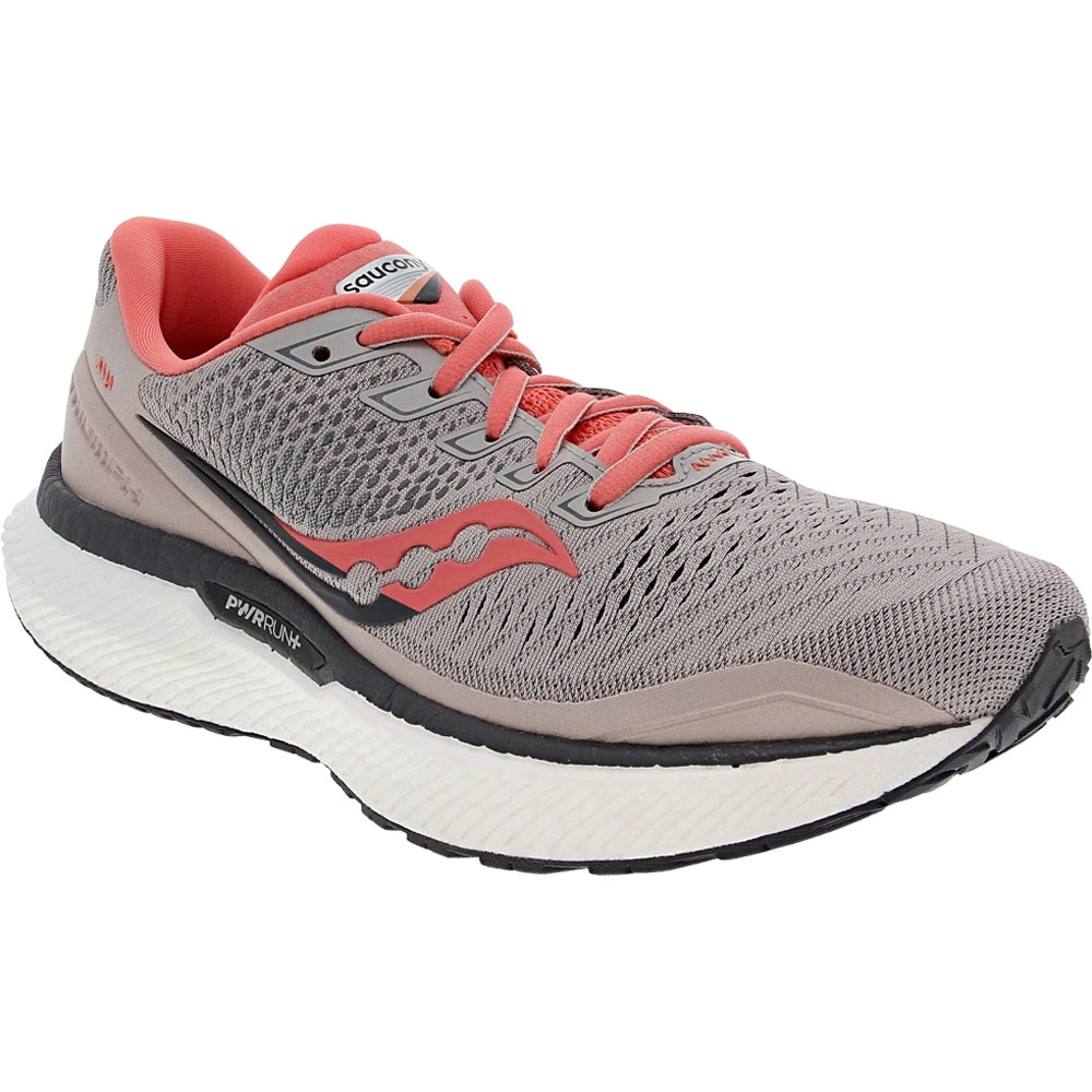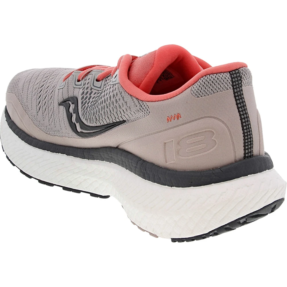 Saucony Triumph 18 Running Shoes – Womens. Go ahead and put that marathon on your calendar for next spring. With Triumph 18 shoes from Saucony on your feet, you’ll be more than ready. Impressively comfortable womens running shoes, Triumph 18 have PWRRUN+ midsole cushioning that simply babies your feet. The engineered mesh upper is breathable and supportive, providing you with a custom-like fit. The midsole has been retooled to be more flexible and responsive. The miles fly by with Triumph.