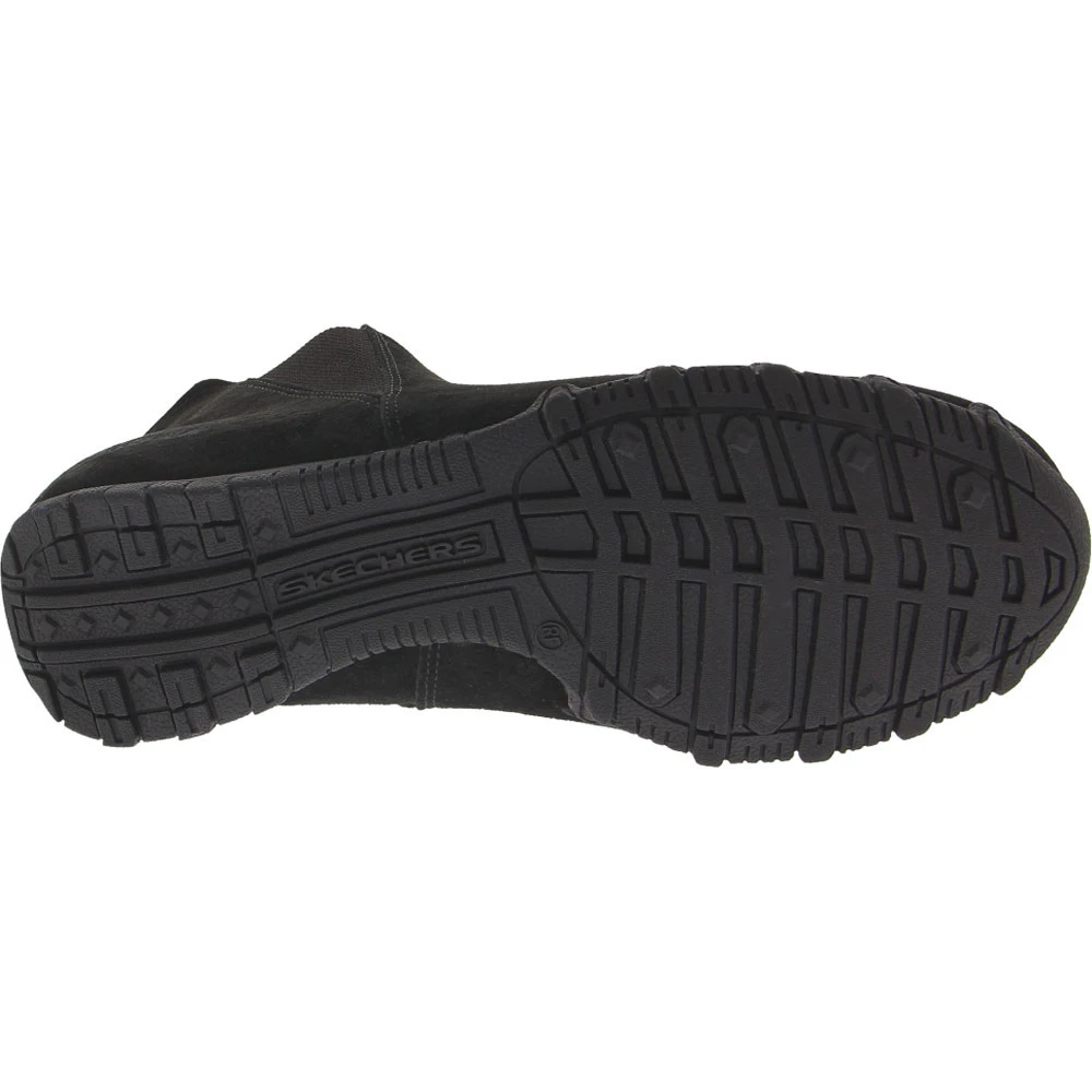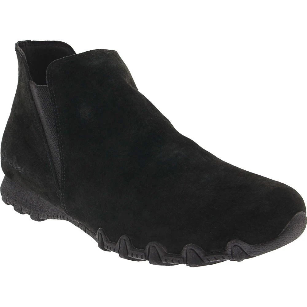 Skechers Bikers MC Bellore Casual Boots – Womens. The Bikers MC Bellore from Skechers combines comfort and style to keep you feeling and looking great all day. Elastic panels on the sides provide flexibility and allow you to slide them on and off with ease. A memory foam insole and shock-absorbing midsole help to reduce fatigue for long-lasting comfort. The Relaxed Fit design provides plenty of room, and the rubber outsole provides traction. These womens casual boots are the perfect choice for everyday wear.