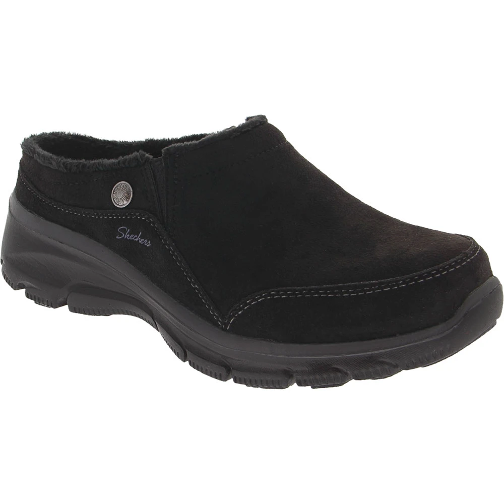 Skechers Easy Going Latte Slip on Casual Shoes – Womens. While wearing slippers out and about may not be suitable, you can still feel like you’re wearing the comfiest shoes ever in these womens slip on casual shoes. Their classy look with a metal button and decorative stitching hide the comfort within. Soft chenille fabric surrounds the foot as it rests on a cushioned midsole designed to absorb impact. Elastic gore panes provide flexible movement and easy on-and-off wear.