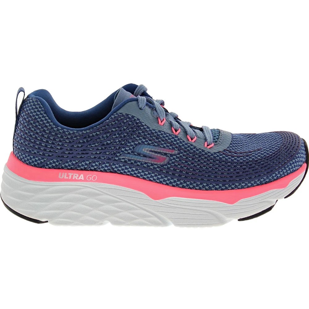 Skechers Max Cushioning Elite Walking Shoes – Womens. Athletes know that comfortable womens walking shoes are necessary for tough workouts. Thankfully, this Skechers sneaker features both response and cushioning. The upper is practically seamless and has mesh fabric for breathability. The midsole includes the responsive yet cushioned ULTRA GO® platform. Finally, the durable yet lightweight outsole provides traction on multiple surfaces. Other features include a mid-foot strike zone for efficiency and forefoot flex grooves for a better transition.
