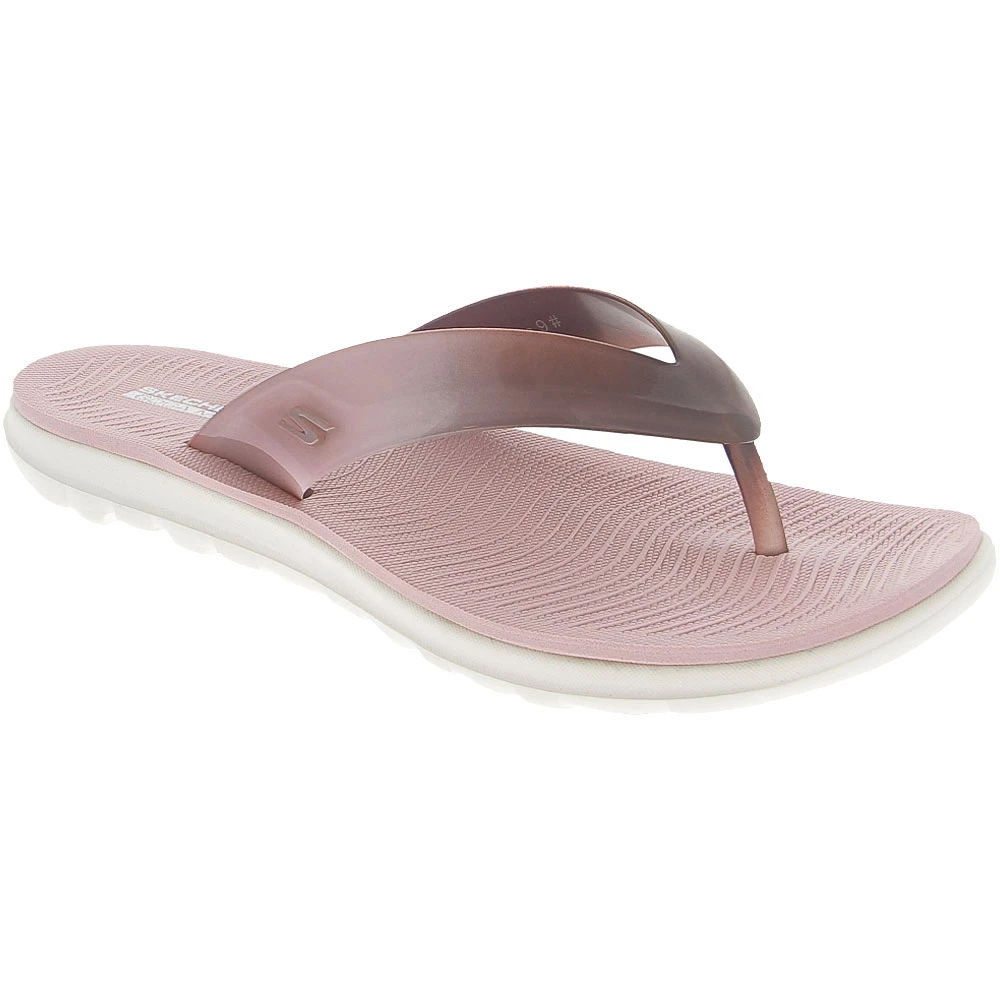 Skechers Nextwave Ultra Women’s Thong Sandals. Up the ante on your beach look with these stylish thong sandals from Skechers. The upper is made from synthetic jelly material that is pliable and comfortable. It has a fun ombre design, featuring one color on the sides and another color near the center of the straps. The footbed contains Goga Mat® material, providing a textured area for the foot to grip. The ULTRA GO™ midsole is lightweight yet supportive, and the rubber outsole offers durable traction.