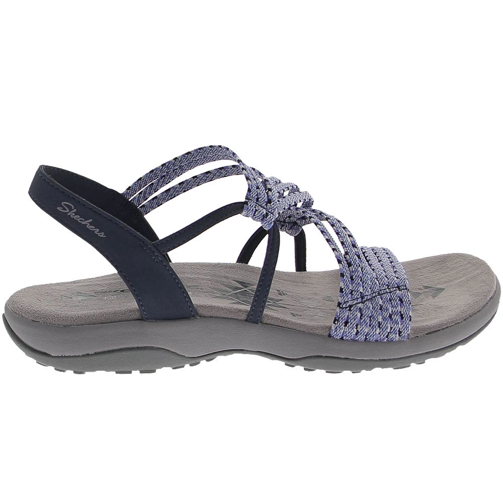 Skechers Reggae Slim Stretch Women’s Sandals. Enjoy the signature comfort of Skechers memory foam in these cute and casual womens sandals. The Skechers Reggae Slim Sandal in Stretch Appeal is both stylish and sporty, making it the perfect choice for an outdoor adventure or your everyday errands. The thin, vibrant straps in a diagonal layout create a fun and flattering look while the heel sling strap offers extra security and stability.