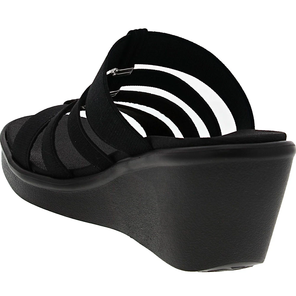 Add some flair to your summer attire with a stylish pair of womens sandals. The Skechers Rumble On – City Fever sandals are designed with stretchy fabric and a Luxe Foam cushioned footbed to keep your feet comfortable. These sandals feature a strappy design and sparkly rhinestones to create an elegant and attractive upper. Whether you are headed to brunch with friends or going to a party, these sandals can elevate your look.