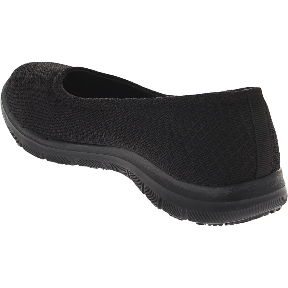 Skechers Work Ghenter Niota Women’s Non-Safety Toe Work Shoes. Every workday is made easier with great footwear, and the Ghenter Niota Womens Work Shoe by Skechers checks all the boxes. It slips on and looks great, while still offering rated protection against electrical hazards. The woven upper is soft and lightweight, with diamond patterned mesh for strength and added airflow. Stylish stitching accents complement the smart, fashionable look, as a slip-resistant outsole promotes needed traction at every step.