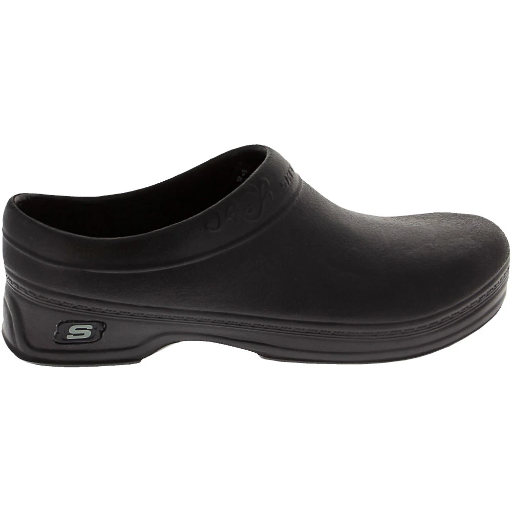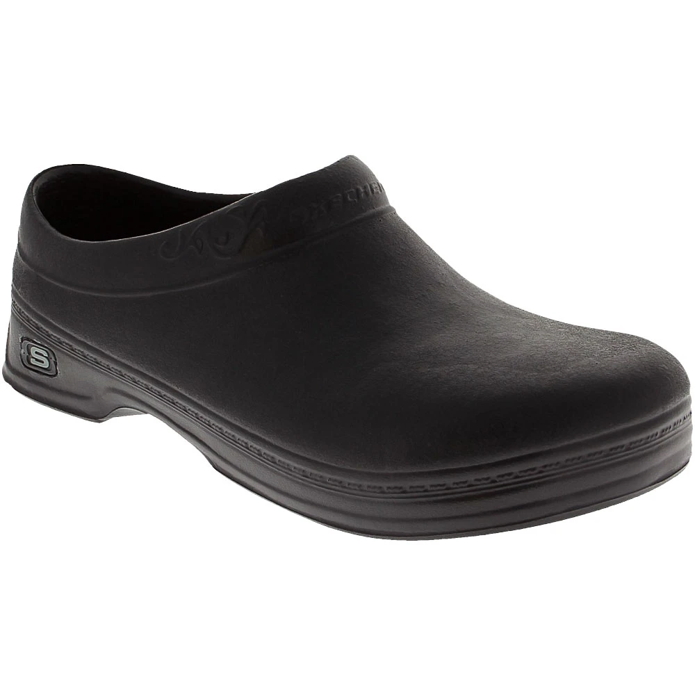 Skechers Work Oswald – Clara Women’s Non Steel Toe Work Shoe. Features a rubber upper accented with a cushioned cuff. Soft padded footbed for maximum shock absorption. A slip resistant rubber sole makes a steady performer out of this clog.