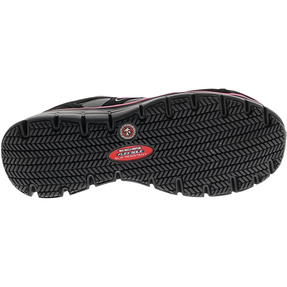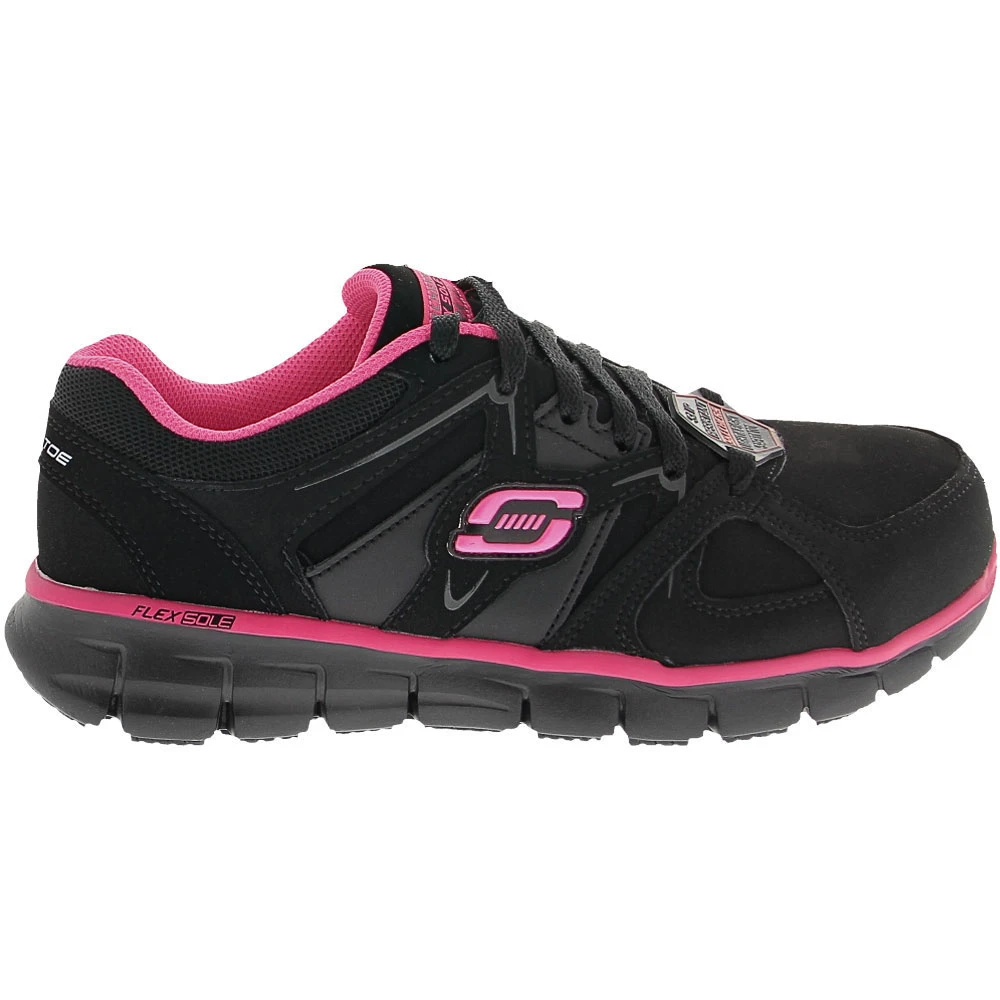 Skechers SK 76553 Synergy Sandlot ST Women’s Alloy Safety Toe Work Shoe. If you are looking for a safety toed work shoe that is flexible and feels like you are walking on a cloud check out the Skechers Sk 76553 Synergy Sandlot ST for women. A nubuck leather upper and slip resistant sole are just the start to this shoe. A flexible sole, memory foam insole and an alloy safety toe cap round it out.