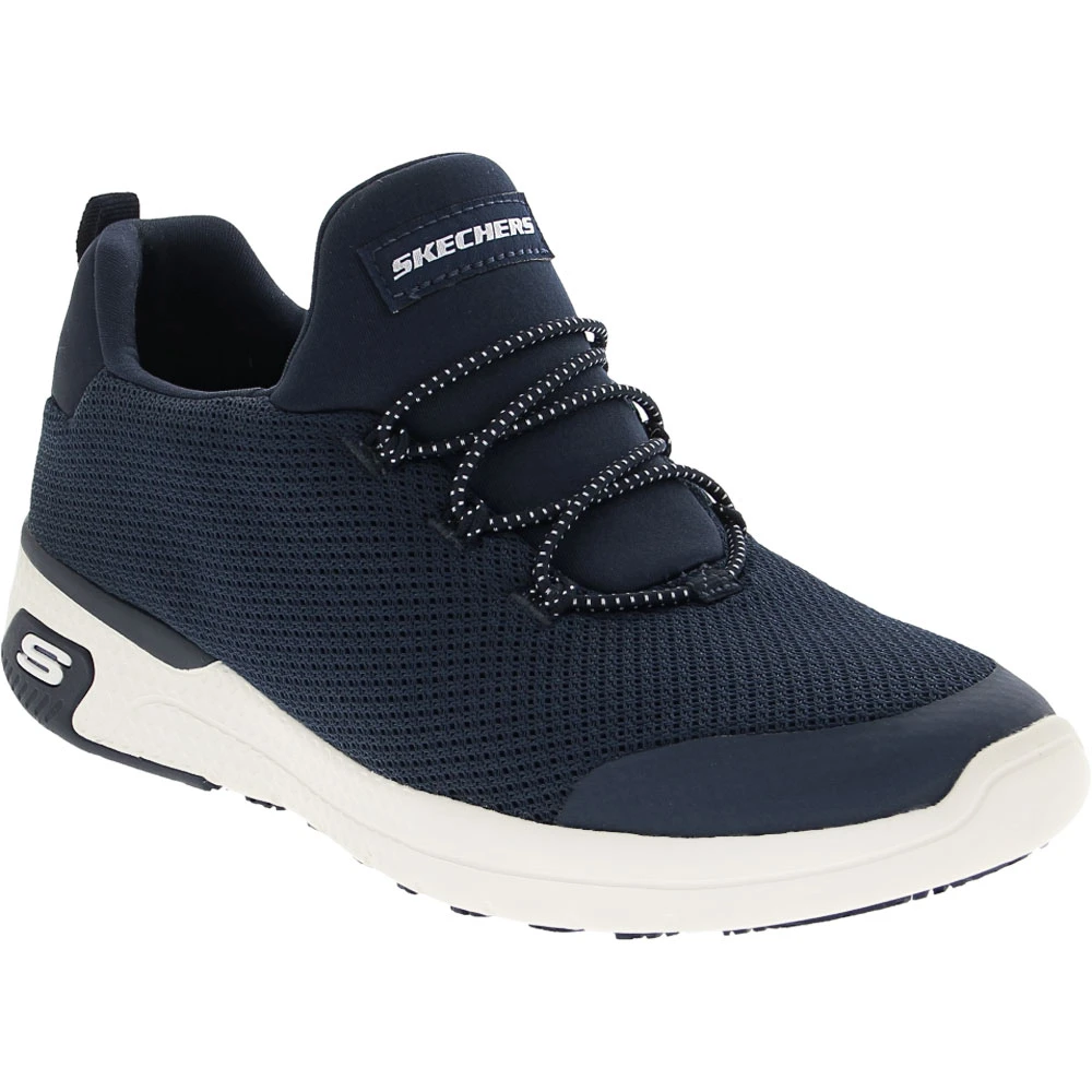 Skechers Work Waiola Non-Safety Toe Work Shoes – Womens. Enjoy sure footing and comfort on the job with Skechers’ Marsing-Waiola womens soft toe work shoes. Water- and stain-repellent mesh uppers feature 3M’s Scotchguard, keeping your feet dry all day long. With its bungee lace-up system, the Marsing-Waiola offers a secure, comfortable and dependable fit. Rubber toe and heel guards shield against accidental bumps and bruises. Memory foam footbeds give you step-by-step comfort, while a traction-focused outsole reduces slipping on slick floors.