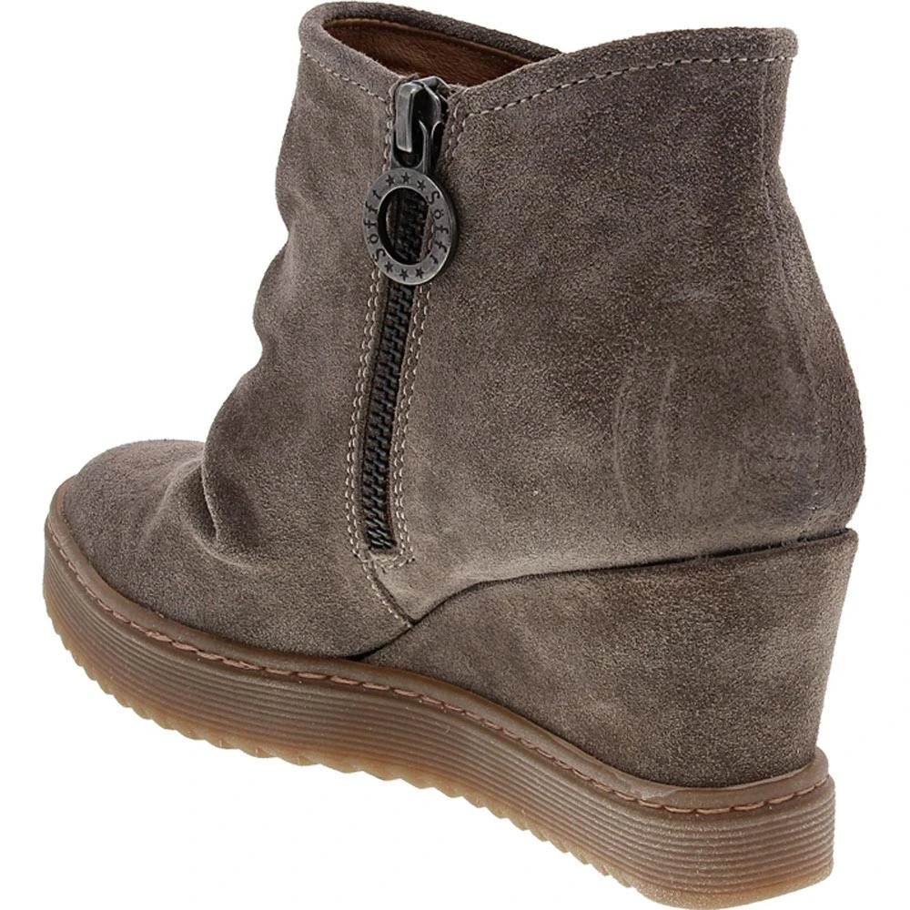 Sofft Siri women’s wedge ankle boots. Blending a more modern style with being cozy and comfortable all day is the Sofft Siri waterproof wedge boot for women. The side zipper on the inside of the boot allows you to quickly get these on or off, and the leather cushioned insole keeps you foot comfortable and supported all day. A microfibre lining allows a smooth feel that does not chafe while walking in these wedge fashionable boots.