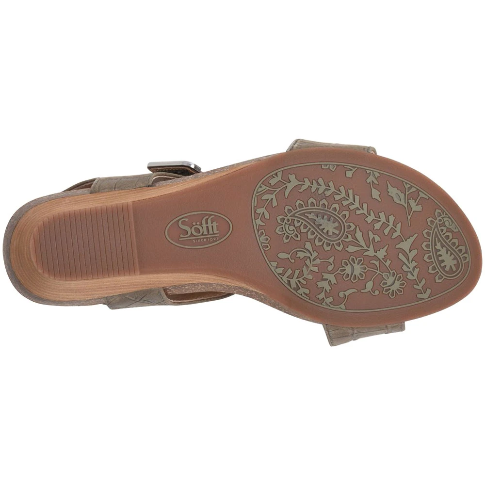 Sofft Verdi Women’s Sandals. Knock it out of the park with a sexy and stylish wedge sandal that is sure to turn heads. The Verdi by Sofft is a smooth statement piece made of soft, full-grain Italian leather. These black women’s sandals are especially stunning with the brown suede lining and molded cork footbed that provide a pleasing contrast to the jet-black leather straps. The CPE outsoles with stacked wedges make this pair deceptively comfy.