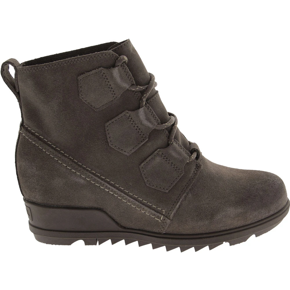 Sorel Evie Lace Casual Boots – Womens. The Sorel Evie Lace has a versatile style that makes it easy to dress them up or down depending on your mood. These womens casual boots feature a wedge heel that is flattering while keeping you stable. An EVA footbed provides plenty of cushioning and support to keep you feeling comfortable throughout the day. The molded rubber outsole uses pattern disruptions to improve traction. A heel tab helps you pull them on easily and the lace-up closure keeps them secure.