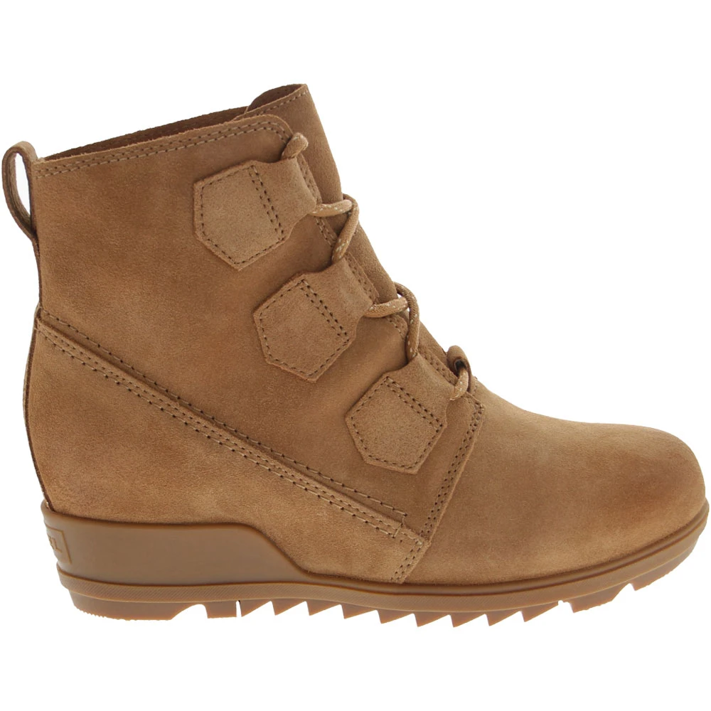 Sorel Evie Lace Casual Boots – Womens. The Sorel Evie Lace has a versatile style that makes it easy to dress them up or down depending on your mood. These womens casual boots feature a wedge heel that is flattering while keeping you stable. An EVA footbed provides plenty of cushioning and support to keep you feeling comfortable throughout the day. The molded rubber outsole uses pattern disruptions to improve traction. A heel tab helps you pull them on easily and the lace-up closure keeps them secure.