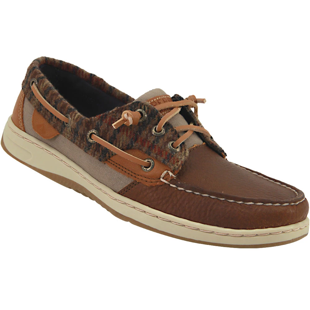 Sperry Rosefish Women’s Boat Shoes. Upgrade to a new casual shoe. The Sperry Rosefish is a classic boat shoe with a hint of old school style. The tonal leather upper features panels of printed fabric. Wrapping around the entire shoe is a 360 degree lacing system providing the best all around fit possible. The soft fabric lining and memory foam footbed join together to comfort feet. Walk in comfort everyday wearing these boat shoes.