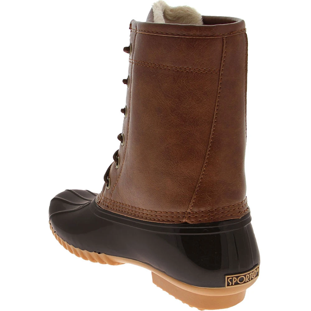 Sporto Demi Rubber Boots – Womens. For commanding height, confidence and total comfort, step into the tall Demi Rubber Womens Winter Boots by Sporto. They are outfitted with zippers at the sides for true convenience, and feature stylish buckled accent straps that wrap around at the ankle. Tough PU construction provides the lasting durability you are looking for, as the treaded rubber outsole maintains trusted grip on a wide variety of surface types.